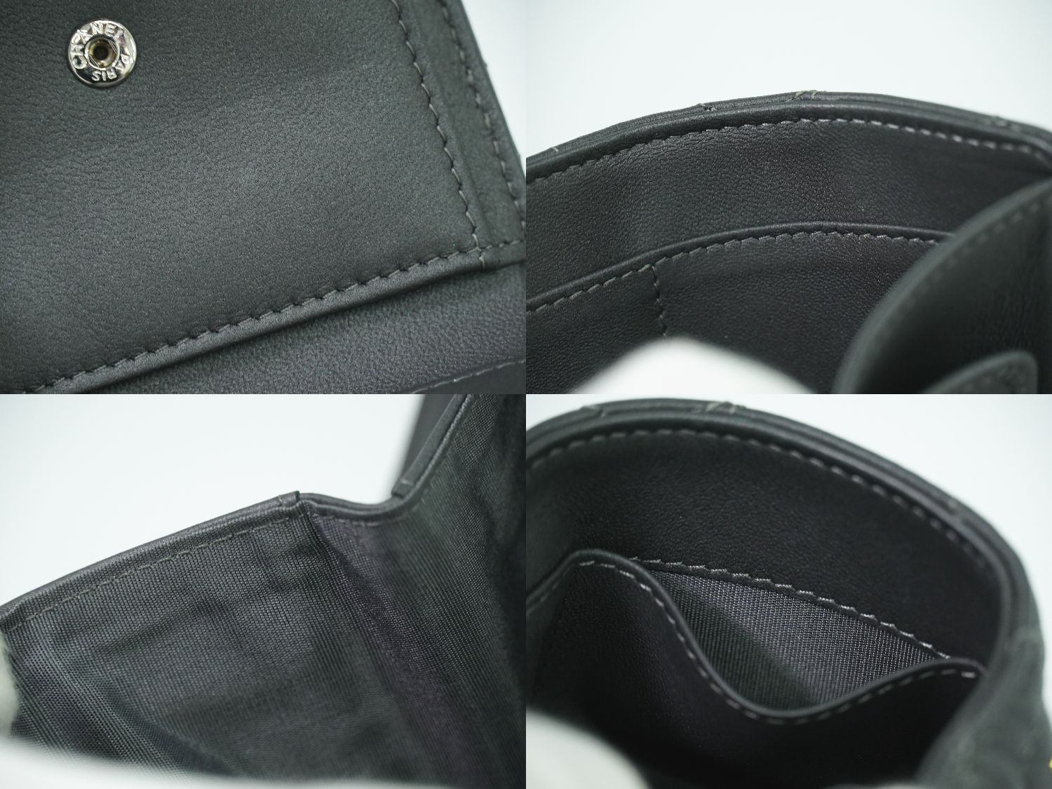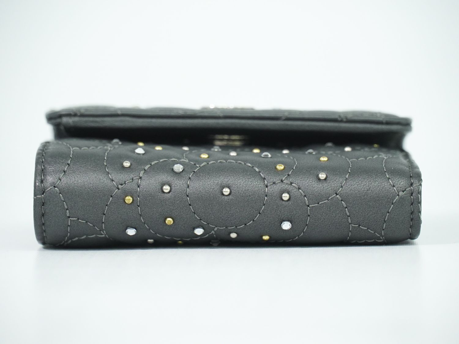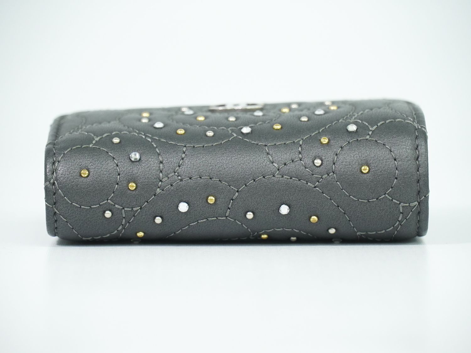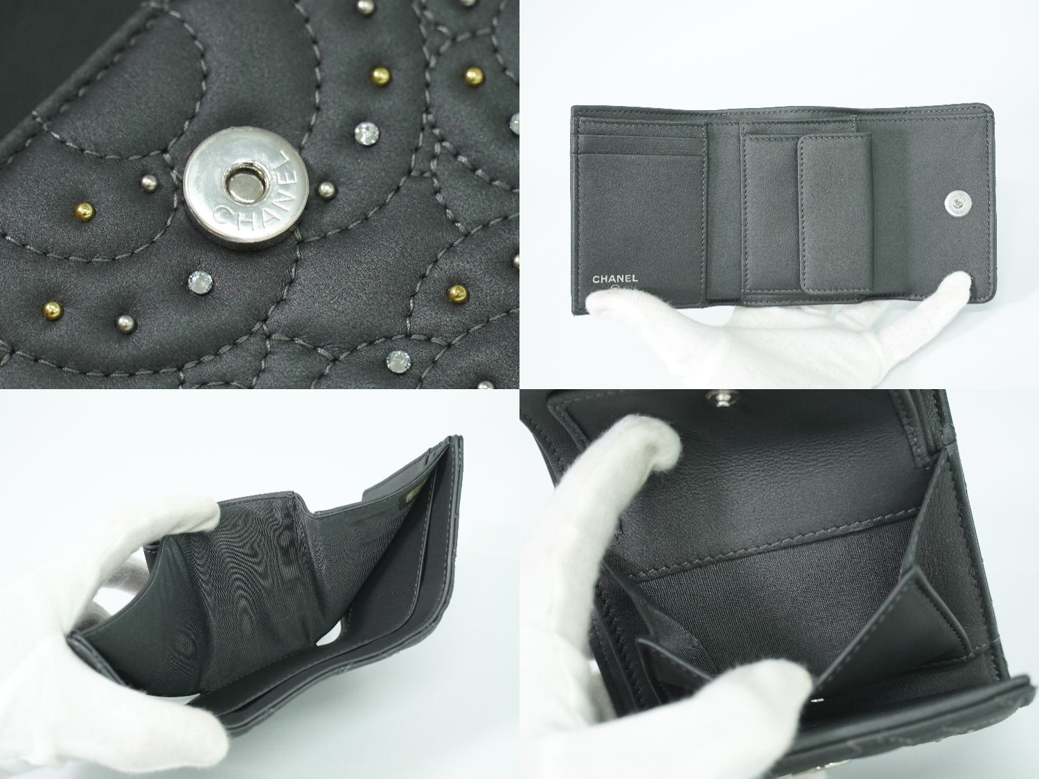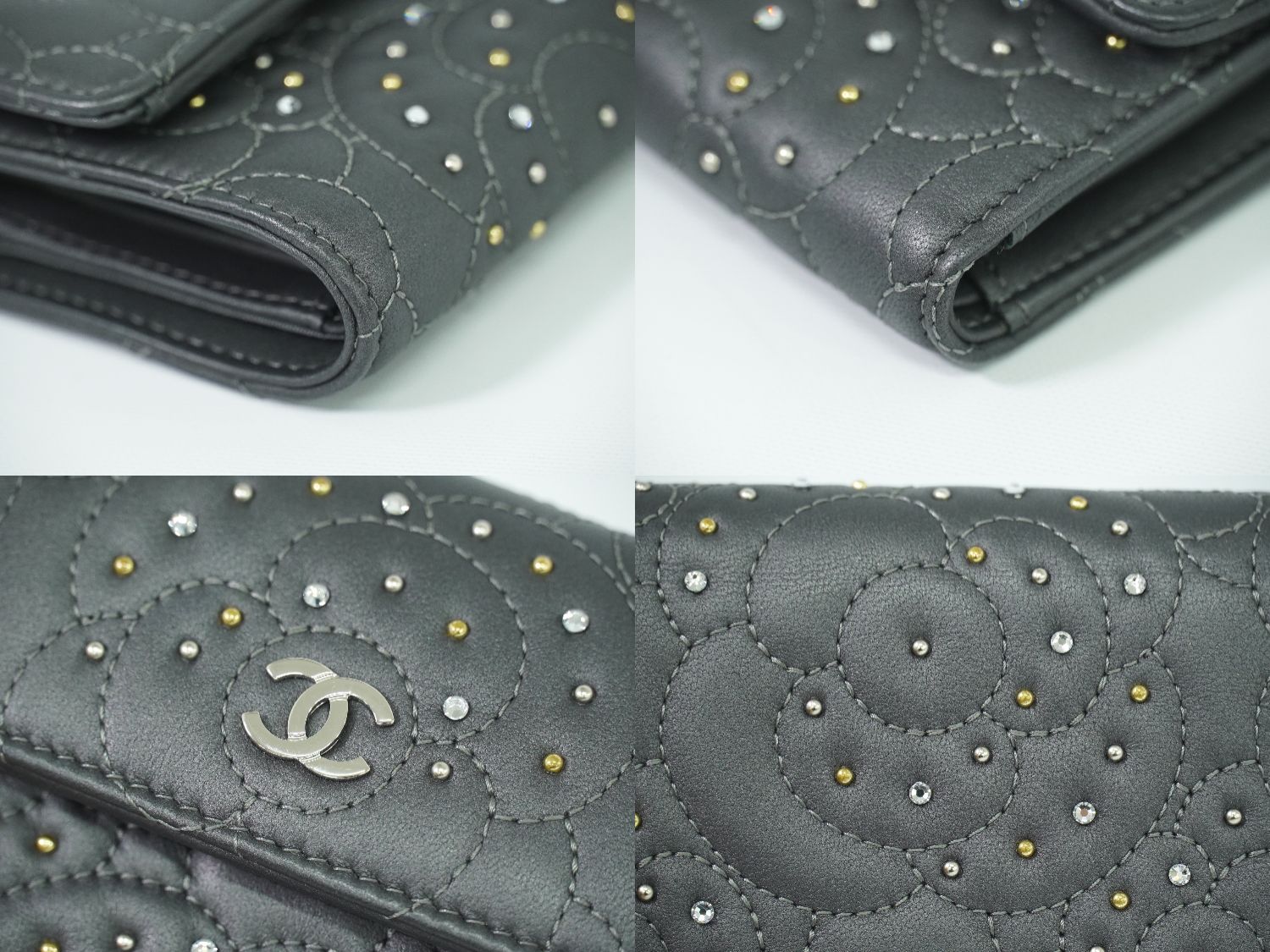 CHANEL カメリア ラインストーン 折財布 ダークグレー