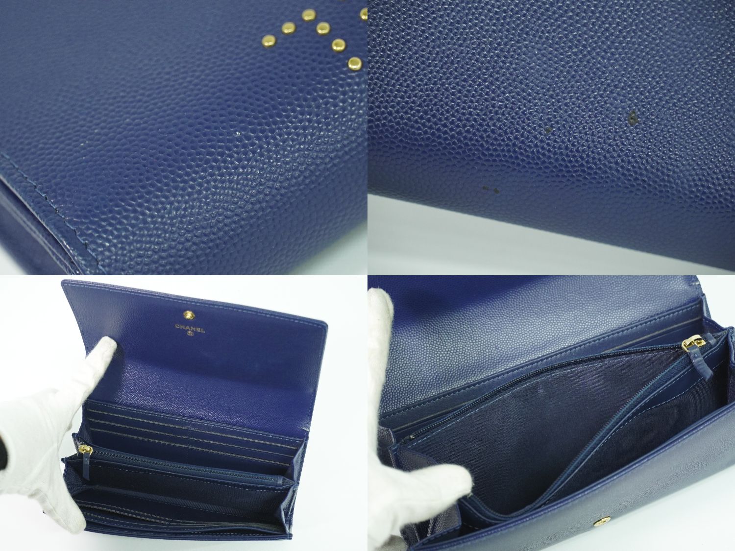 CHANEL ドーヴィル ココマーク スタッズ 長財布 ネイビー