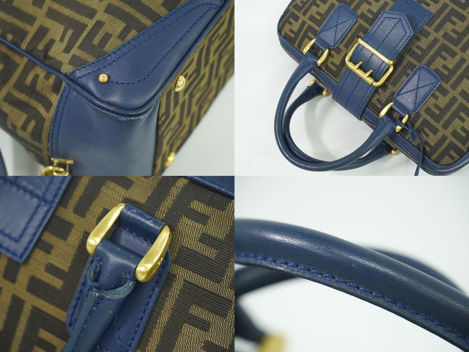 FENDI ズッカ ハンドバッグ ブラウン ブルー 8BN069