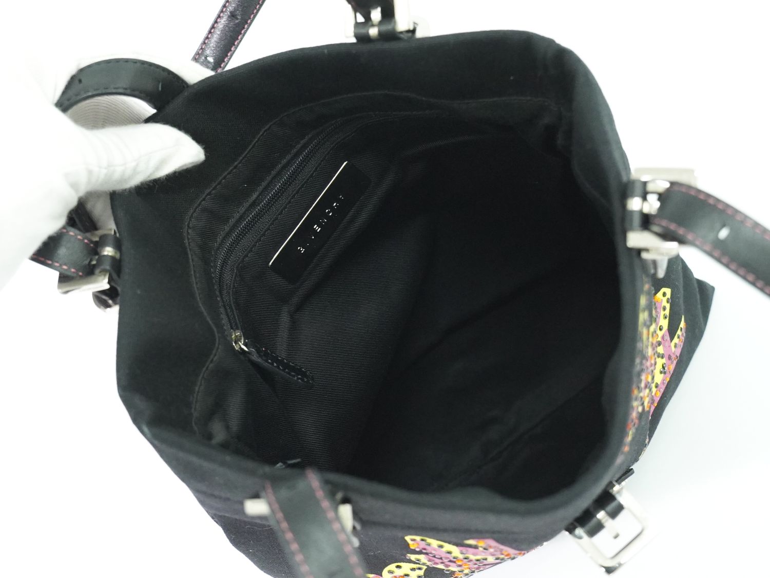GIVENCHY ロゴ ラインストーン ショルダーバッグ ブラック ピンク イエロー
