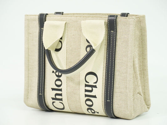Chloe ウッディ スモール トートバッグ ベージュ ネイビー