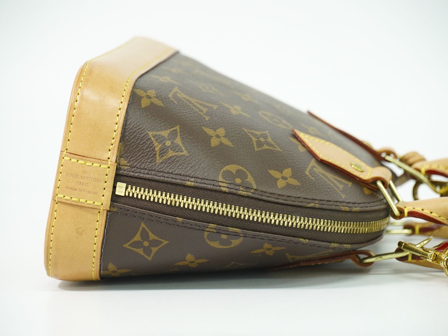 付属のストラップはアルマBBのものではありませんがLOUIS VUITTONの正規品です。 ヌメ革 日焼け・染み・少汚れ 角 少擦れ/金具 少変色 ハンドル 日焼け・染み/ストラップ 日焼け・少黒ずみ 内側 少擦れ・ステッチ切れ |