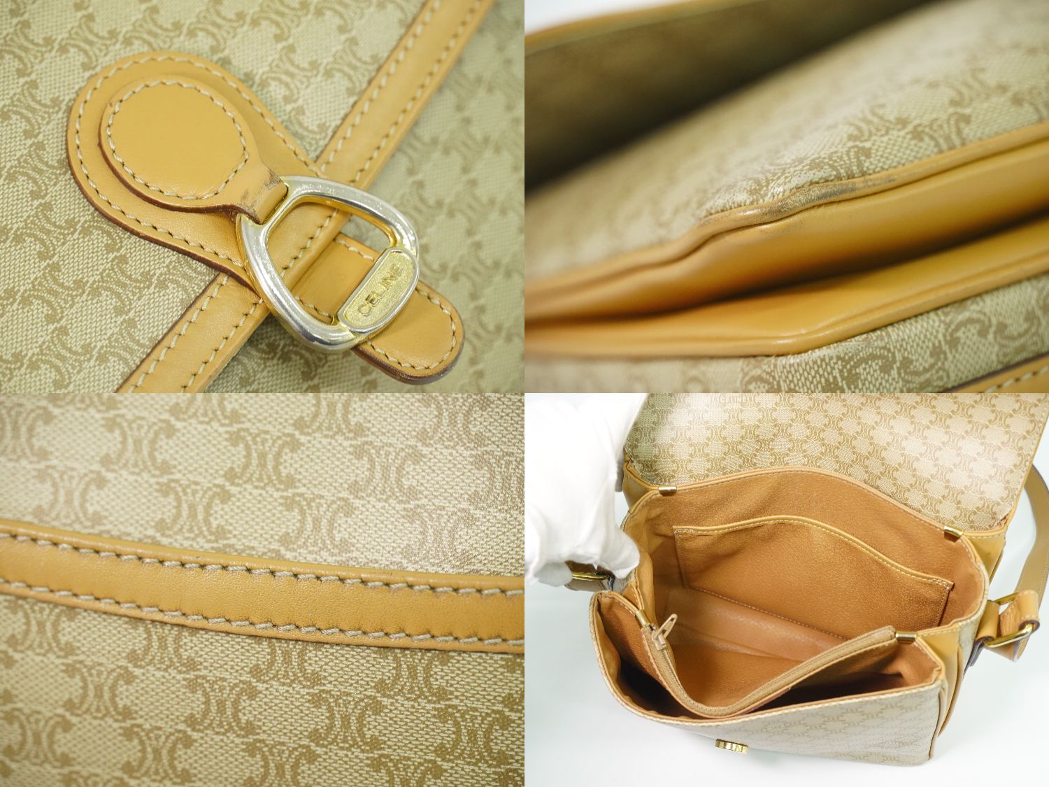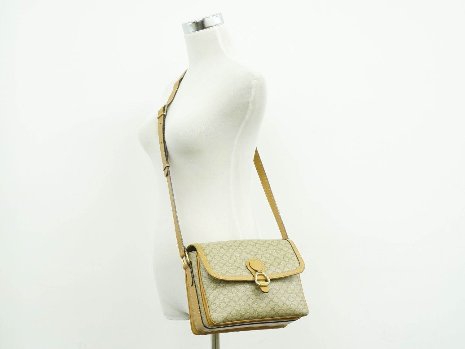 CELINE マカダム ショルダーバッグ ベージュ