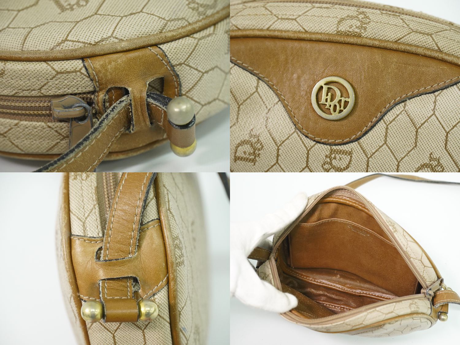Christian Dior ハニカム柄 ショルダーバッグ ベージュ